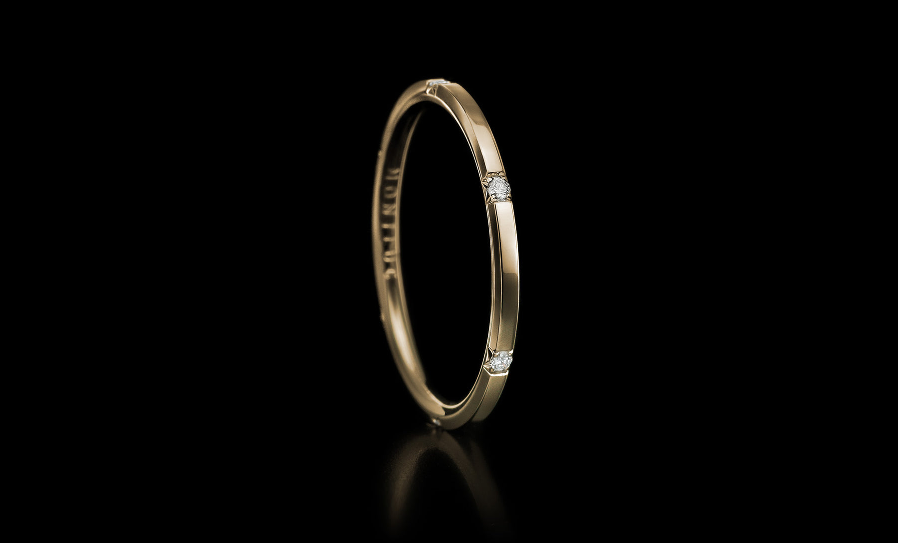 6 beautiful, colourless, triple excellent cut diamonds set in a slim band of matte or polished gold.