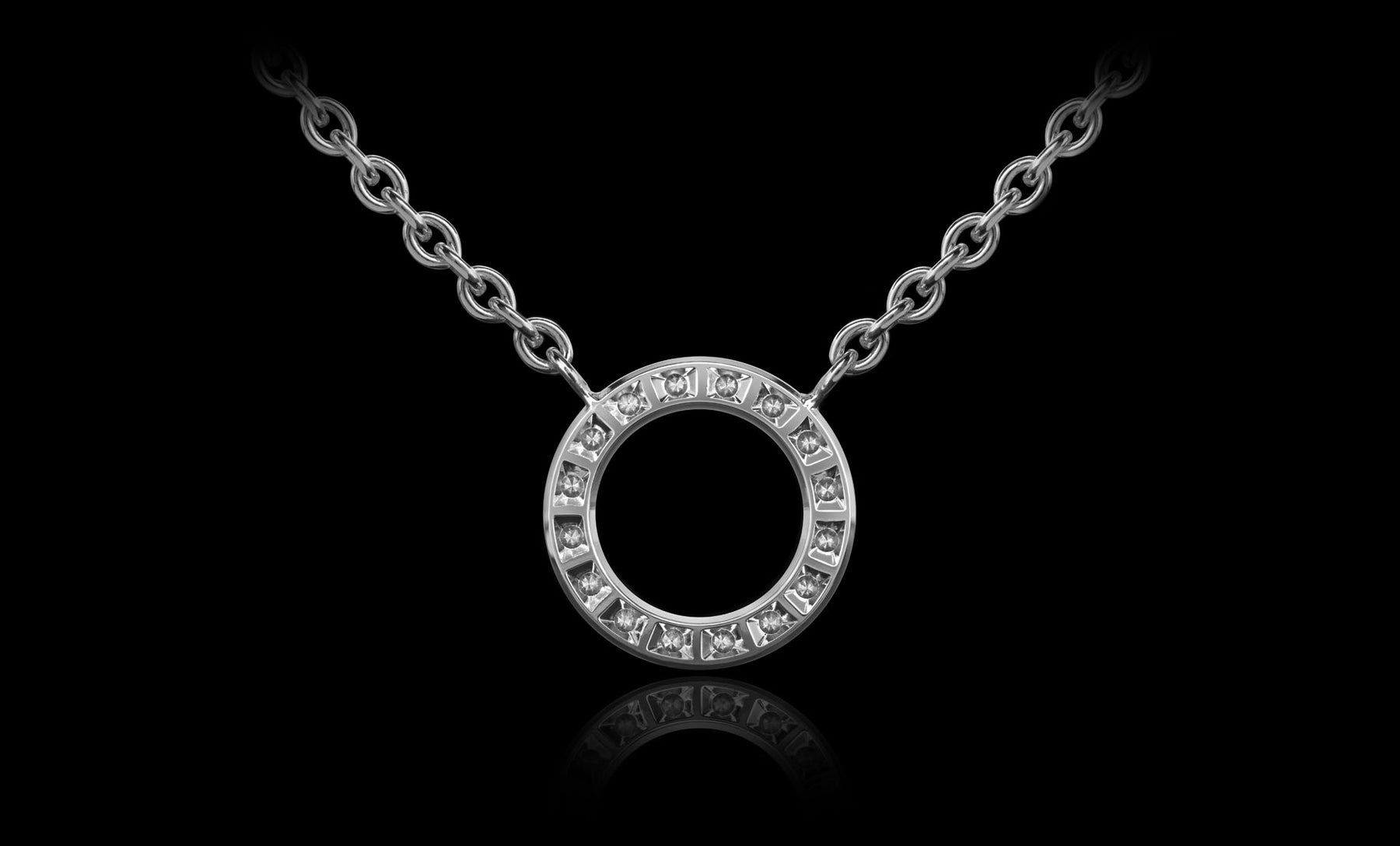 A beautifully simple pendant set with 16 of the world’s highest quality diamonds.